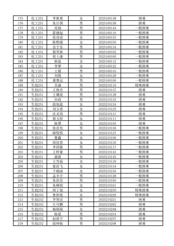 经学生本人申请、各班级认定评议小组民主评议、生物工程学院家庭经济困难学生认定工作组审核确认,现将2025—2026学年新生家庭经济困难学生认定结果进行公示。