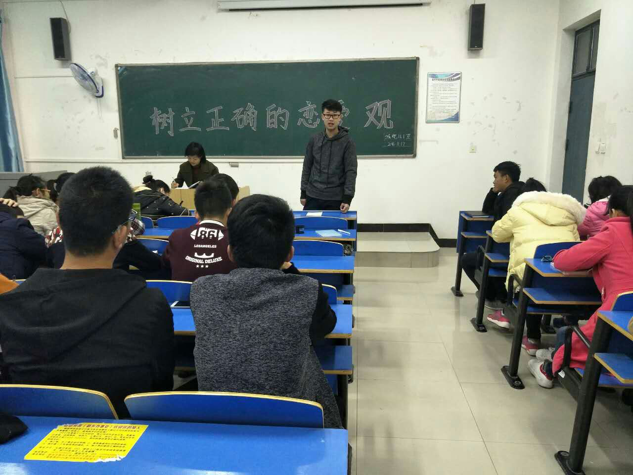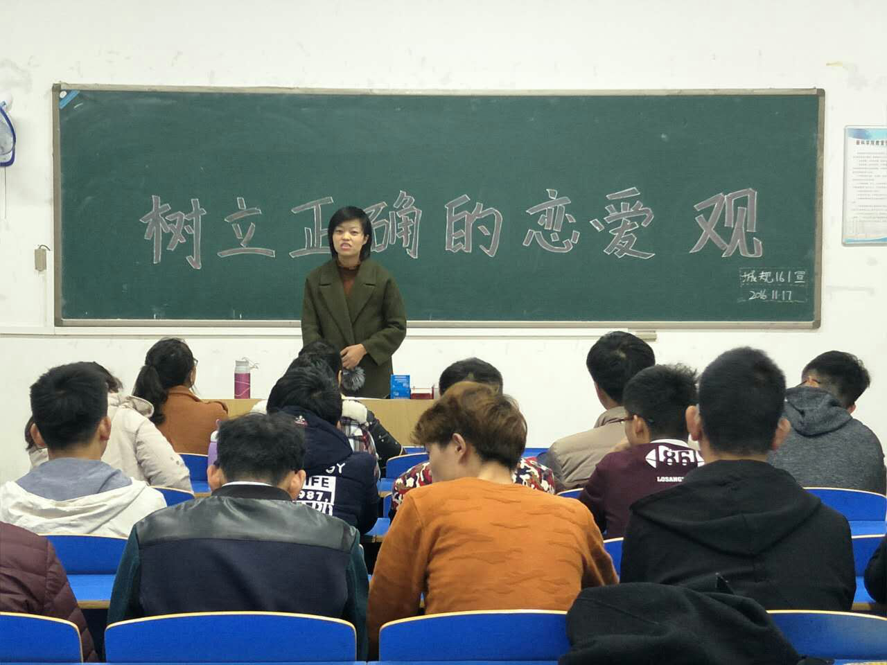 为了让同学们树立正确的恋爱观,理智对待男女关系,城规系16级全体同学于2016年11月16、17日分别在12号教学楼502、404教室召开了“树立正确恋爱观”主题座谈会。会议由辅导员郭丽娟老师主持召开。