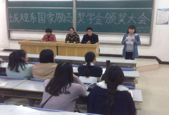 为进一步推动优良学风建设,发挥优秀学生的榜样示范作用,3月18日中午,城规系在12号教学楼合二教室举行了2015-2016学年国家励志奖学金颁奖仪式。系主任王秀鸽,辅导员郭丽娟、晋跃栋出席会议,2014、2015级全体同学参加会议。会议由郭丽娟老师主持。