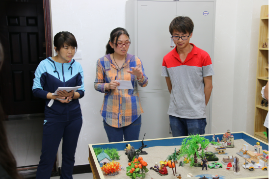 5月20日下午,在心理健康教育与咨询中心主任高普梅,系主任王秀鸽、团总支书记晋跃栋带领下,我系部分学生干部13人到科研楼615房间开展团体沙盘活动。