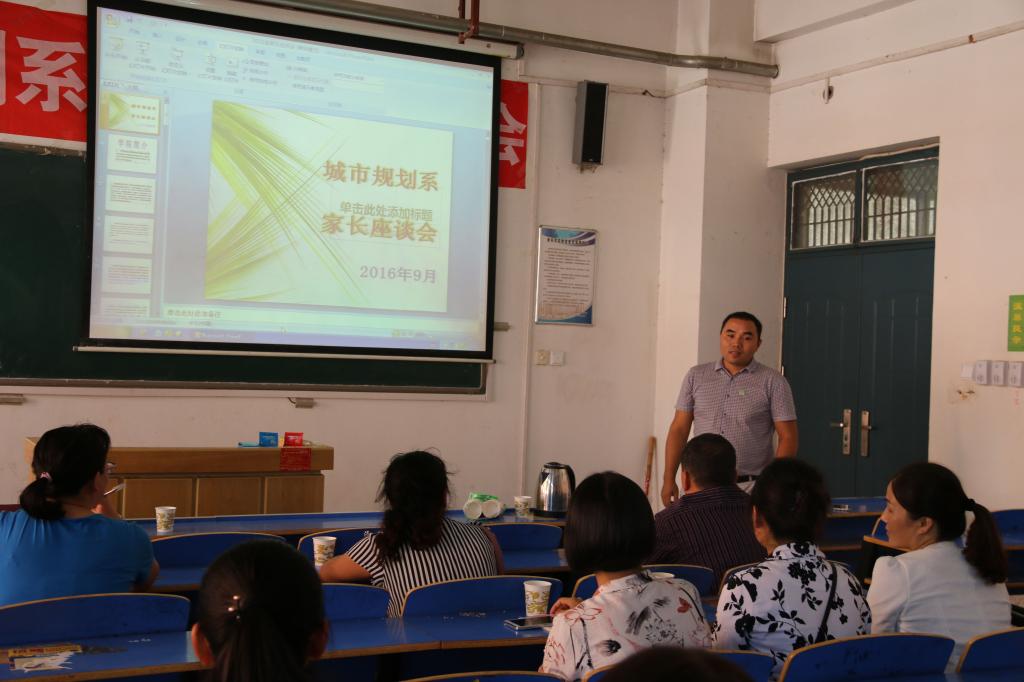 为了促进学校教育与家庭教育的沟通,使家长更全面的了解自己孩子在大学期间需要做的事情,家长需要配合学校做的工作,我系于9月10日上午11点,在12号楼116教室召开了新生家长座谈会。系主任王秀鸽老师,团总支书记晋跃栋老师和16级学生管理工作李世界老师出席会议,部分新生以及家长参加。