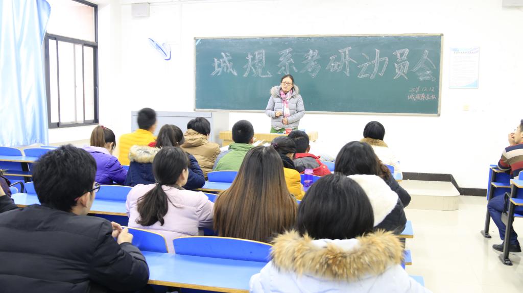 为使考研学生在最后冲刺阶段有一个良好的复习状态,考场上少出错误,发挥出最佳水平,2016年12月12日城规系在十二号教学楼503教室召开考研动员大会,城规系学工管理人员及2013级考研学生参加了此次会议。