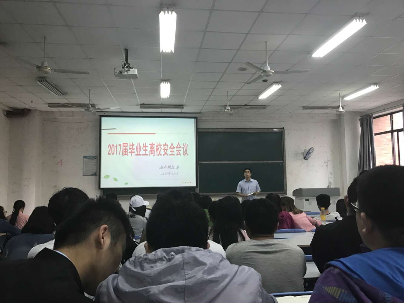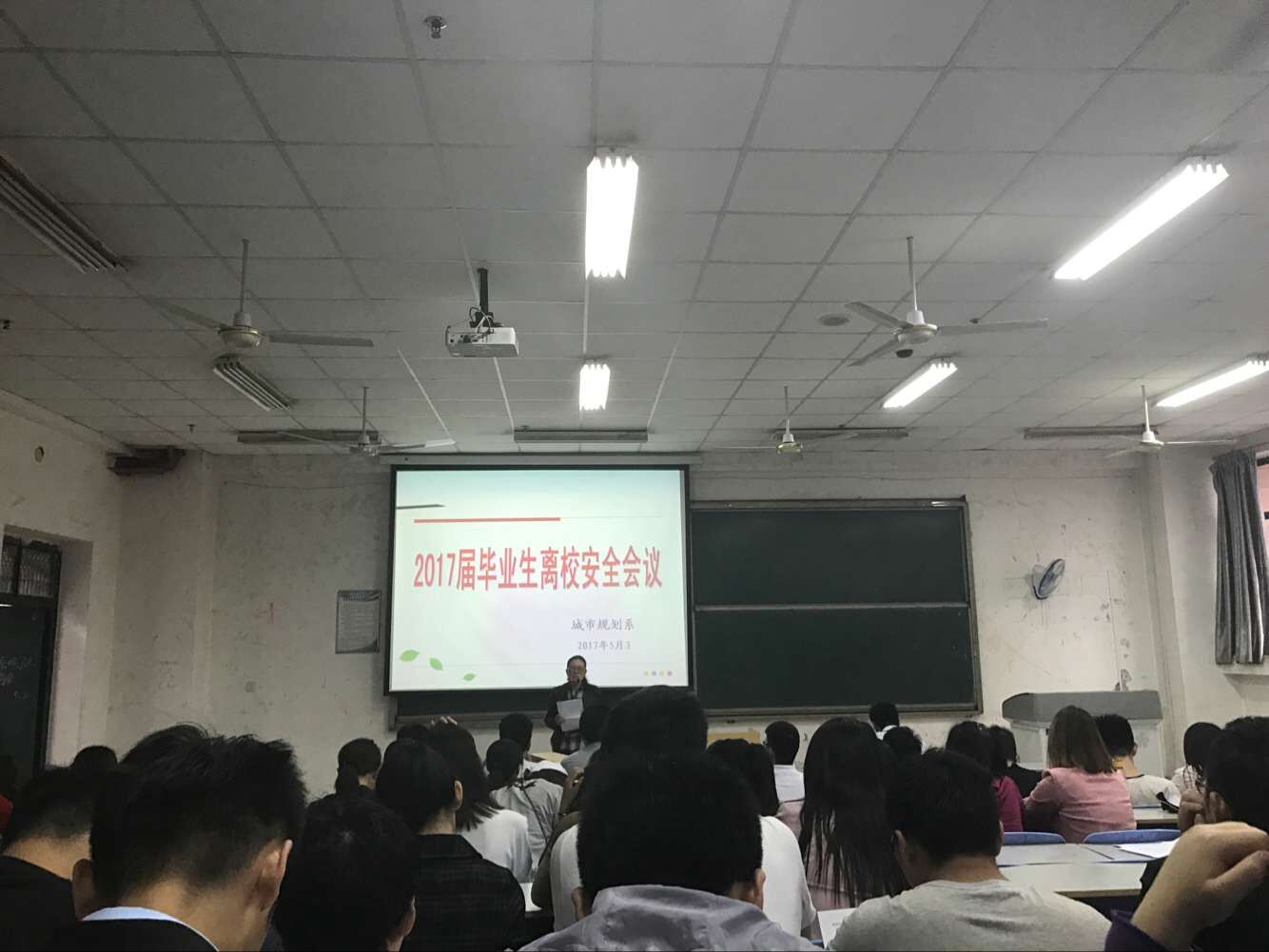 5月3日上午,城规系在12号教学楼合八教室召开毕业生专题会议。系主任王秀鸽、毕业生辅导员晋跃栋和教学秘书曾灵玲及2017届全体毕业生参加了会议。