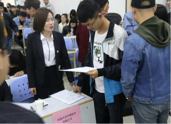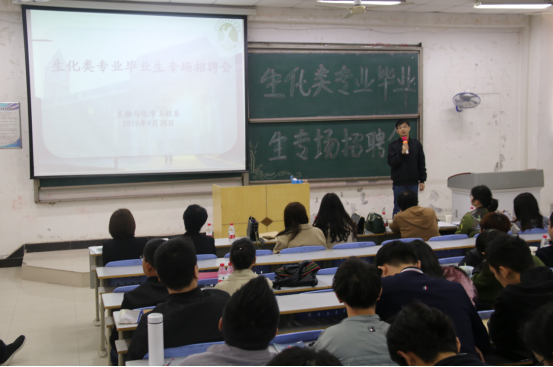 为促进毕业生就业,4月26日上午9点,我系在12号教学楼合八教室举办了生化类专业毕业生专场招聘会。此次招聘会邀请了华兰生物工程股份有限公司、河南恒晟检测技术有限公司、新乡白鹭投资集团有限公司、新乡市博源生物科技有限公司、新乡市锦源化工有限公司、河南兴龙生物技术有限公司、河南方亿密封科技有限公司等来自新乡周边市县的七家用人单位,我系2019届化学工程与工艺、生物工程、生物技术专业100余名毕业生参加了本次招聘会。辅导员黄世江主持会议。