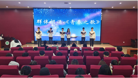 本次活动分为五个环节:我唱、我看、我议、我诵、大合唱。活动伊始,主持人庞振威和袁媛向大家阐述了本次活动的目的和主题,学生代表李晗通过演唱励志歌曲《我的梦》为本次“星空讲堂”拉开了帷幕。随后,全体师生一同观看了以当代青年为主题的视频,学生代表冯俊茹和王英杰分别分享了自己的观后感悟,她们希望我们能够在成长的道路上再接再厉,以一颗努力的心迎接今后的学习生活。接着,学生代表集体朗诵《青春之歌》表达对党和祖国的热爱与歌颂。最后,在歌曲《我相信》的奋进歌声中,本次活动落下帷幕。