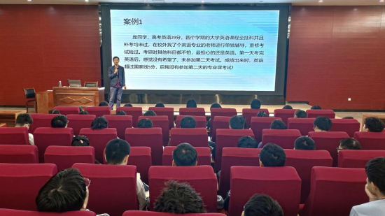会议伊始,黄老师介绍压力的来源和影响,提供有效的压力管理策略,分享高效的学习方法和技巧;接着,通过播放考研减压视频讲解,强调了心理健康的重要性,鼓励同学们在紧张的学习氛围中减轻自己的焦虑,以健康平稳的心态去准备研究生考试;随后,黄老师讲述往年学生考研案例,树立了同学们坚持考研的决心,正确引导同学们明确自己的理想目标,同时建议同学们规划好专业与文化课的进度,掌握好自己的备考节奏,持之以恒地朝目标前进,为考研成功奠定坚实基础;最后,黄老师对临考前的31种心理调适技巧进行了介绍,结合自身经历告诉同学们不必对考研所带来的焦虑情绪过度恐惧,学会放松身心,及时减压。