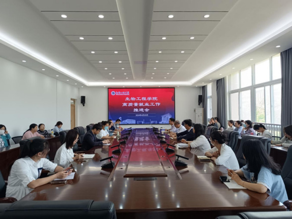 为全面总结我院2024届毕业生考研及就业情况,做好2025届考研及就业工作,4月25日下午,生物工程学院在综合实验楼201会议室召开高质量就业工作推进会,副校长赵一鹏应邀出席本次会议,会议由学院院长牛立元主持,生物工程学院全体教师参会。