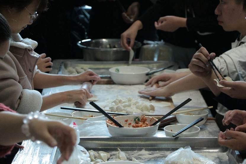 锅盖开启之际,依序围坐于桌旁的教职工们品尝亲手包的饺子,在活动中,他们切实感受到了大家庭的温暖和节日的快乐,也拉近了彼此的距离,让集体凝聚力在热气腾腾的饺子中得到传递。至此,本次教职工冬至饺子制作活动圆满落幕。