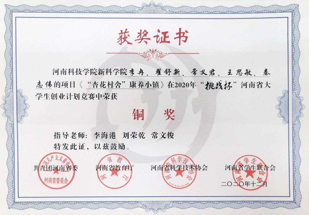 2020年“挑战杯”河南省大学生创业计划竞赛铜奖