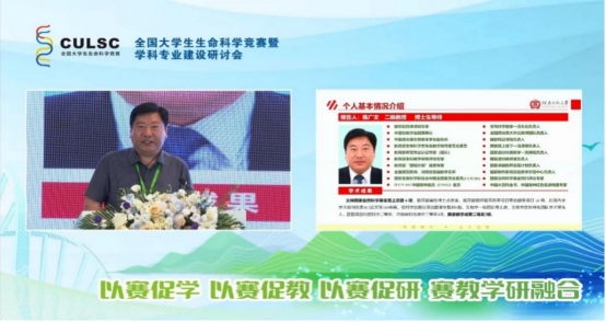 2024年6月8日,由全国大学生生命科学竞赛委员会主办,河南师范大学承办的“全国大学生生命科学竞赛暨学科专业建设研讨会”在新乡举行。22位教育部生物学课程、生物科学、生物技术与生物工程等教学指导委员会副主任委员、秘书长、委员以及全国55所高校的120多名生命科学领域专家学者参会。会议全程进行网络直播,千余人次线上同步观看。会议特邀虚拟教研室主任陈广文教授就专业内涵建设和拔尖人才培养做专题报告。