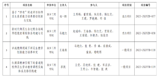 河南省教师教育课程改革研究项目由河南省教育厅组织评审并批准立项,旨在结合我省教师教育改革发展实际,聚焦教学和人才培养改革重大命题,通过深入开展教师教育课程改革研究,加强教师教育学科队伍建设,促进教师教育体系建设,切实提高人才培养质量。学校将进一步加强项目过程管理,强化基础教育研究,精炼优秀教学成果,促进广大教师学习教育教学理论、提升科研能力、提高教学水平、解决实际问题,推动新时代教师教育向更高质量迈进。