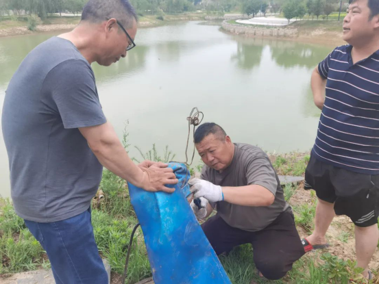 为防范暴雨天气可能带来的不利影响,6月26日,永利23411集团官网后勤管理处工作人员在校园人工湖一侧安装防汛水泵,防范湖水上涨可能造成的外溢。
