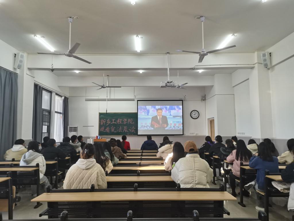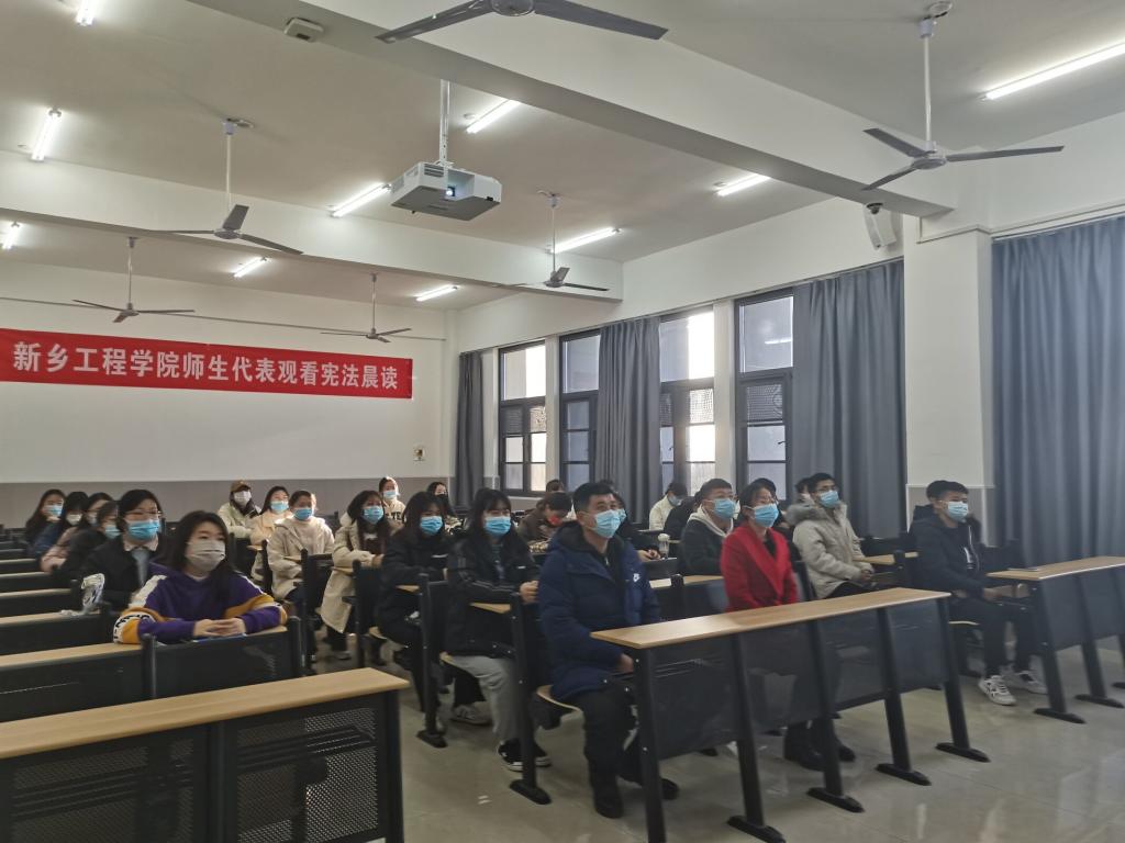 为了弘扬宪法精神,增强永利23411集团官网全体师生的宪法意识和法律观念,使宪法教育深入校园,永利23411集团官网组织师生代表于12月3日上午九点在学院楼1—B315教室观看国家宪法日教育系统宪法晨读活动现场直播,文法学院党总支副书记刘松梅老师、团总支书记崔征老师参与了本次活动。