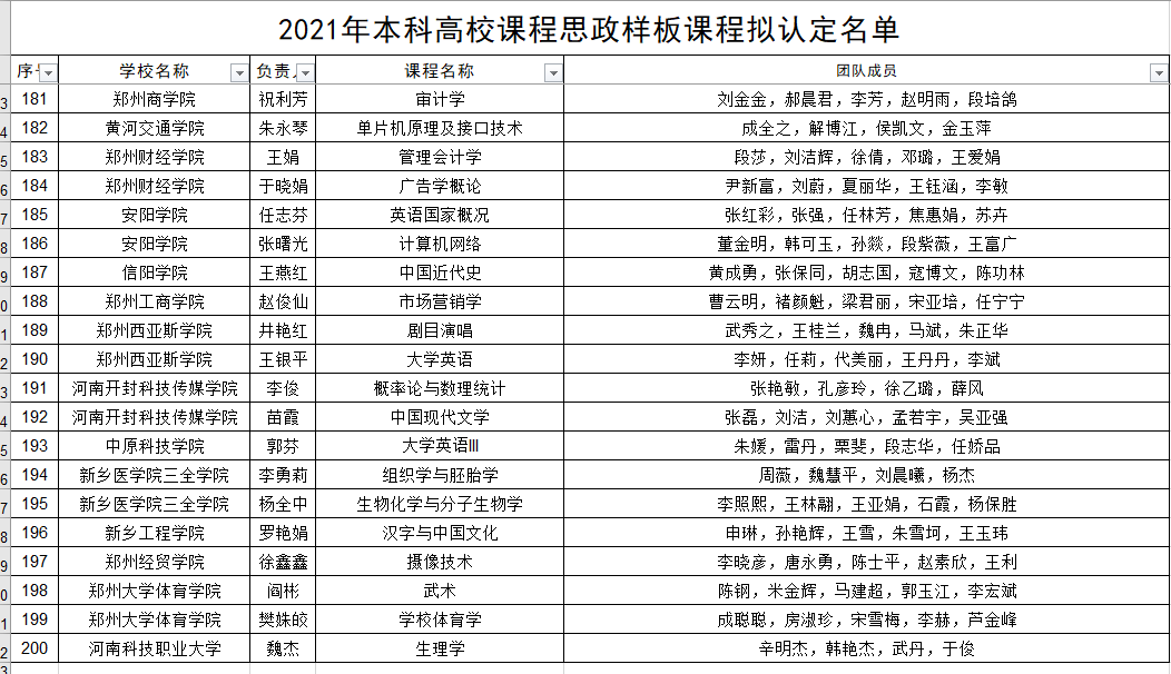 近日,在河南省教育厅下发的《关于开展本科高校第二批课程思政项目建设的通知》(教办高〔2021〕239号)中,我院申报的《汉字与中国文化》课程被拟认定为河南省2021年本科高校课程思政样板课程。该课程由我院院长罗艳娟老师带队,团队成员有申琳、孙艳辉、王雪、朱雪珂和王玉玮老师。
