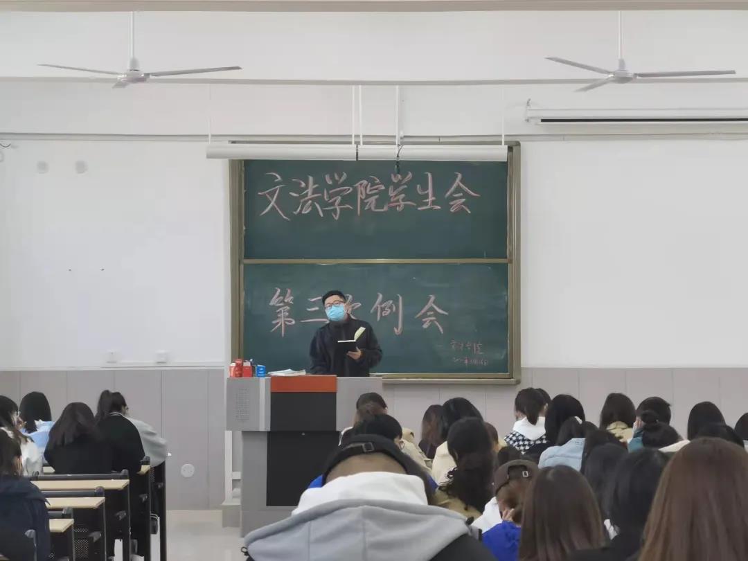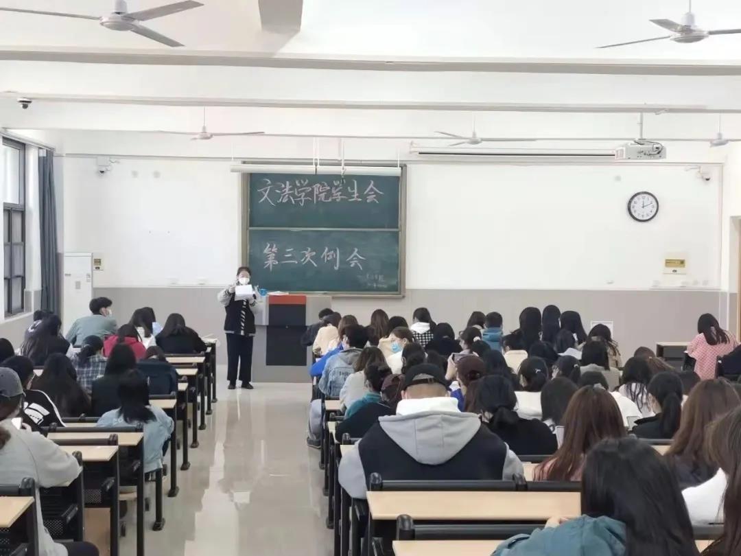 11月16日中午,文法学院学生会第三次例会于学院楼1-B302教室召开,学生会全体成员及20级、21级班委参加。