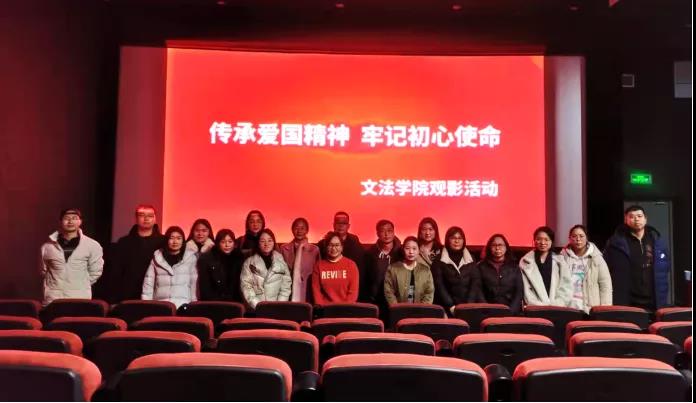 为深入学习宣传贯彻党的十九届六中全会精神,持续深化拓展党史学习教育,激励广大党员干部、教 师弘扬革命优良传统,激发爱党爱国爱社会主义的热情,12月2日下午,文法学院党总支组织抗日历史题材影片《铁道英雄》观影活动,文法学院副院长罗艳娟、党总支副书记刘松梅及全体教职工赴星洲影城观看了影片。