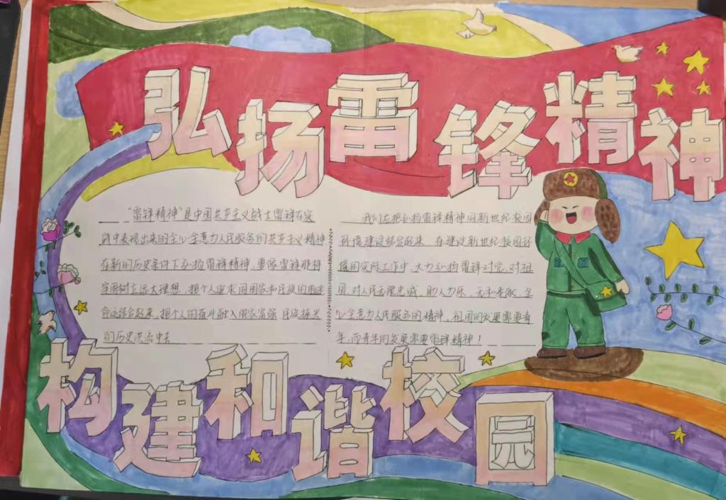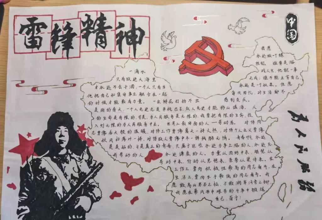 为促进学生对雷锋精神内涵的理解,继承和发扬新时代雷锋精神,增强学生团结友爱、认真负责的精神,我院结合当前疫情防控形式于2022年3月开展了雷锋月主题手抄报活动。本次活动由实践部举办,并面向文法学院全体同学。