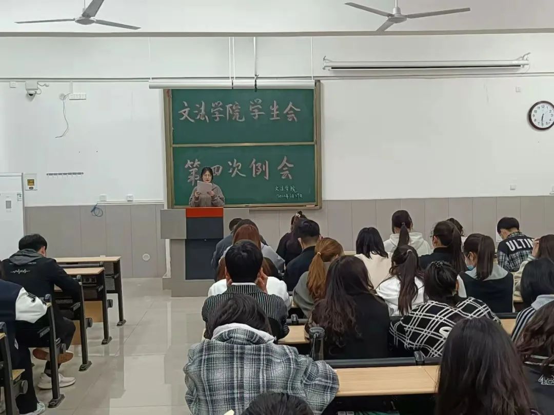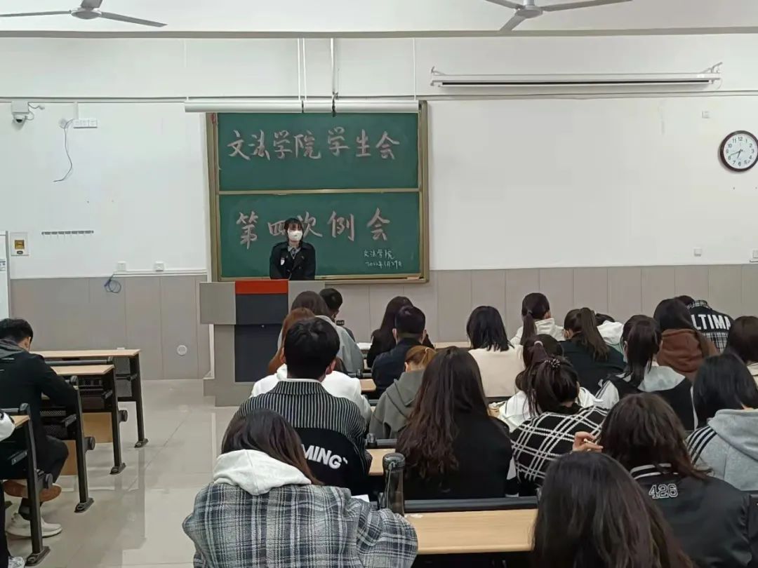 3月29日晚,文法学院学生会第四次例会在学院楼1B-302教室召开,学生会全体成员及20、21级各班班委参加。
