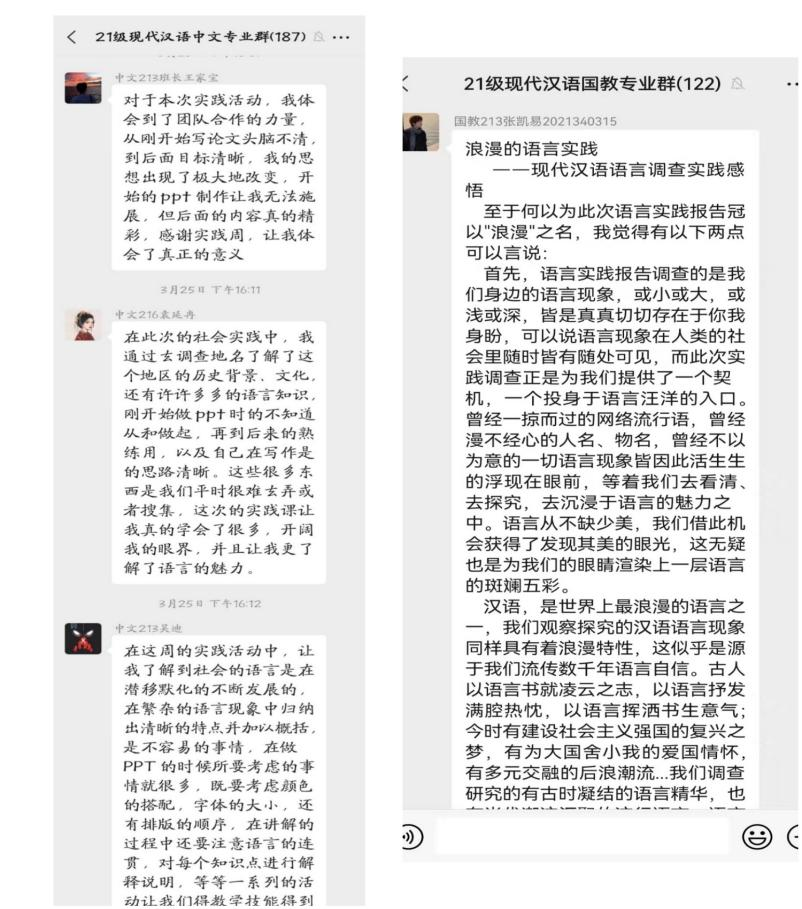以下摘取的是21级汉语言文学专业和汉语国际教育专业对此次活动的收获与感悟: