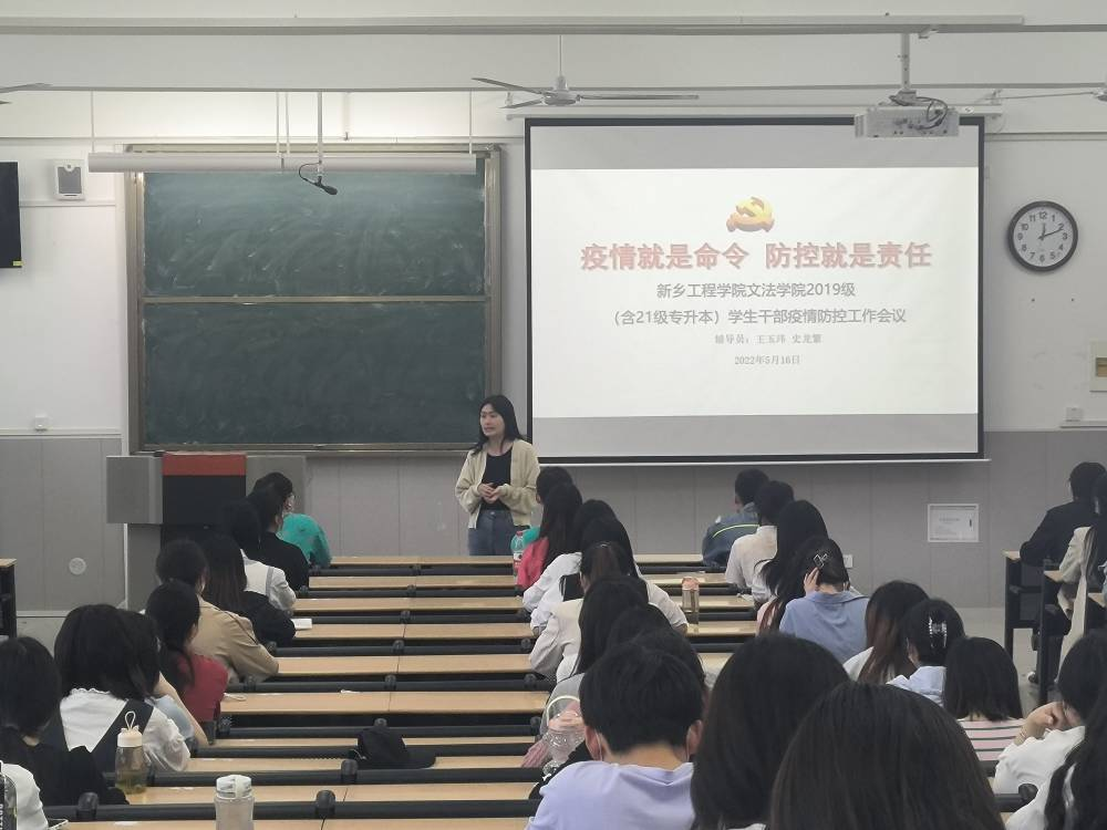 会上,史龙繁、王玉玮两位老师首先对于现阶段各地的疫情情况进行详细分析,让同学们认清形势,深刻认识疫情防控的重要性。接着,史老师和王老师就当前疫情防控工作对班干部和宿舍长的工作职责和要求进行详细的安排。