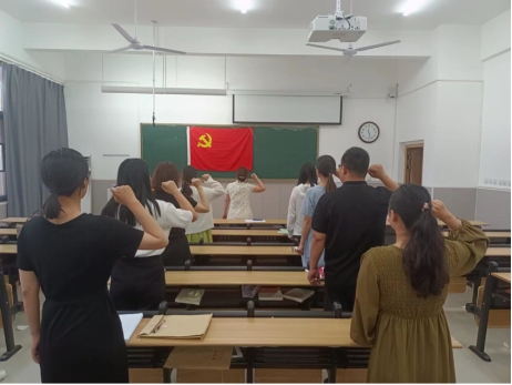 2022年5月26日,文法学院教工党支部于学院楼315教室召开预备党员接收大会,讨论决定是否接收朱雪坷同志为预备党员。