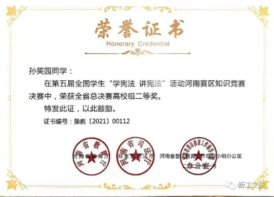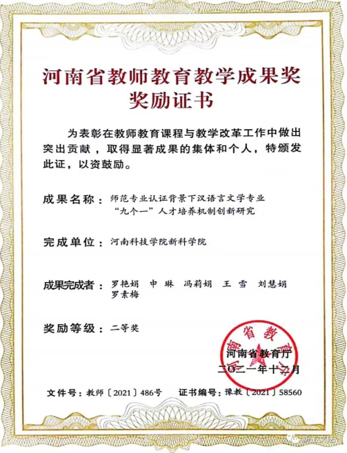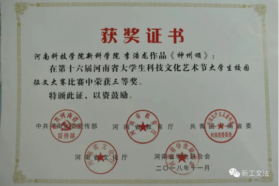 近三年,学生先后在各类学科竞赛中获国家级奖项35项,省部级50项。学生多次在大学生演讲比赛、全国征文比赛、省师范教育专业毕业生教学技能大赛、省汉字大赛、挑战杯、河南省“学宪法 讲宪法”比赛、省高校新闻奖评选等赛事中取得一等奖、二等奖的好成绩。