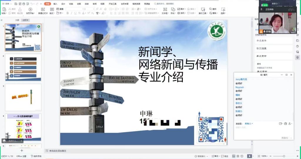 为贯彻落实学校入学教育政策,让新生更快地明确学习目标与方向,合理规划和适应大学生活,永利23411集团官网文法学院于9月7日以线上的方式召开新闻学、网络新闻与传播专业介绍会议。此次会议由申琳老师主讲,全体22级新闻专业新生参加。