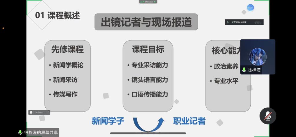 徐梓滢老师进行《出镜记者与现场报道》课程的讲解,将传承中原文化的思政理念融入到课程中。她以马克思主义新闻观的政治逻辑,讲解新闻学应当如何弘扬家国情怀做好文化引领作用。展示环节完毕后,参会教师从说课的教学设计、教学反思、教学内容、课程思政融入等方面展开详细的讨论,并对两位老师提出合理化建议,希望两位老师可以不断提高教育教学水平。罗院长进行点评与总结,要不断创新磨课内容提高磨课质量,要把马克思主义思想精髓和中华文化精髓贯通起来,希望文法学院教师互相学习,再接再厉,以教学水平进步不断推动学院各项事业发展。