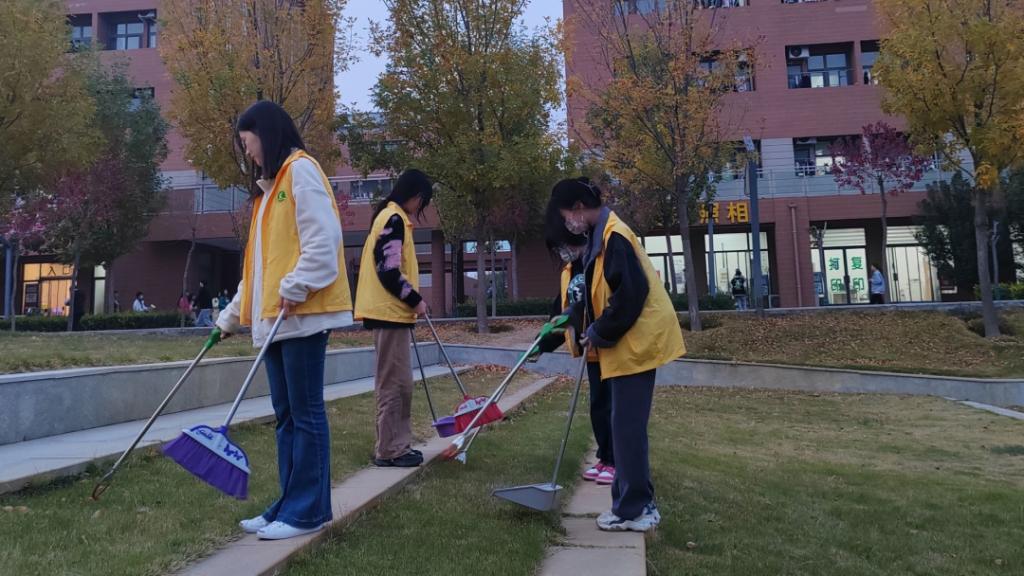 志愿者们在青年自律部副部长李阔的明确分工下,各自前往清扫区域。清扫过程中,志愿者认真负责、积极配合、分工合作,手拿打扫工具清扫卫生区域死角垃圾、枯草落叶,将树丛内的白色垃圾和绿化带中的烟头、纸屑、枯枝捡拾起来。每位同学都干劲十足,相互配合,不怕脏,不怕累,充分展现了学生们阳光向上,朝气蓬勃的精神风貌。经过同学们的辛勤劳动,校园环境变得整齐有序,同学们也在劳动中进一步传承和发扬了无私奉献、乐于助人、艰苦奋斗的精神。