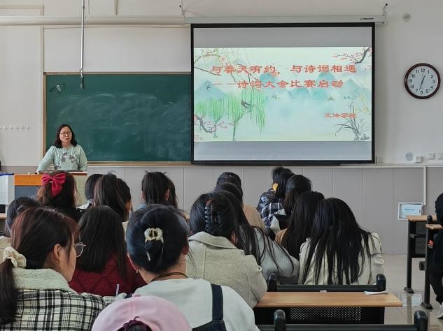 为促进我校学生课外活动的深入开展,丰富校园文化生活,陶冶学生的思想情操,培养学生的竞争意识,展现大学生的时代风采,激发同学们对诗词的热爱,提高大学生的文学素养,我院于3月13日中午在学院楼1-B316召开诗词大赛赛前培训会议。此次培训由孙艳辉老师和王筱铮老师主讲,各参赛小组参加。