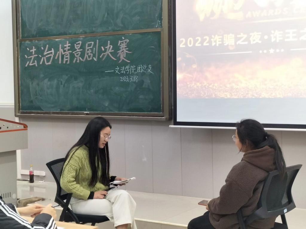 为推进校园法治文化建设,提高学生的法律意识,增强学生的法治观念,文法学院于3月19日在学院楼1-B302教室举办法治情景剧决赛。此次比赛由文法学院学生会组织,共有五支队伍参加比赛。