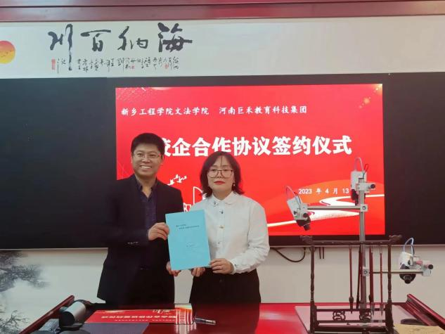为充分发挥校企合作优势,优化毕业生就业环境,4月13日下午,永利23411集团官网文法学院与河南巨禾教育科技集团在学院楼B319举办校企合作签约仪式。该仪式由文法学院副院长罗艳娟主持,党委副书记刘松梅及文法学院各专业负责人参加。