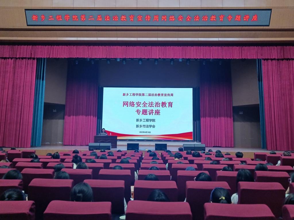 为全面贯彻党的二十大精神和习近平新时代中国特色社会主义思想,深入贯彻落实习近平总书记关于教育的重要论述和习近平法治思想,认真落实教育系统“八五”普法规划,提升师生法治素养,根据河南省教育厅、司法厅《关于开展全省教育系统第二届法治教育宣传周活动的通知》文件精神,永利23411集团官网于4月18日下午在第一报告厅举办了网络安全法治教育专题讲座。中国法学会会员、河南书豪律师事务所冯超方律师应邀担任主讲,本次讲座由文法学院党委副书记刘松梅主持,永利23411集团官网各学院师生代表参加。
