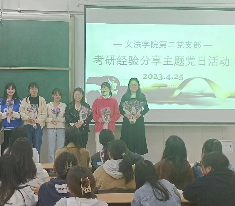 为深入学习贯彻党的二十大对教育工作的重要论述,响应学校“我为师生办实事”的号召,满足汉语国际教育专业考研学生的切实需求,文法学院第二党支部联合2023年汉语国际教育专业考研上岸的优秀学生于2023年4月25日晚19:00在学院楼B303教室开展考研经验分享主题党日活动。此次主题党日活动由支部书记李婉鑫同志主持,雷佳怡、薛亚飞、张瑜、何文君、罗芳杰、孙宁霞、齐兵杰七位考研成功同学作考研经验分享,20级、21级汉语国际教育专业学生参加活动。