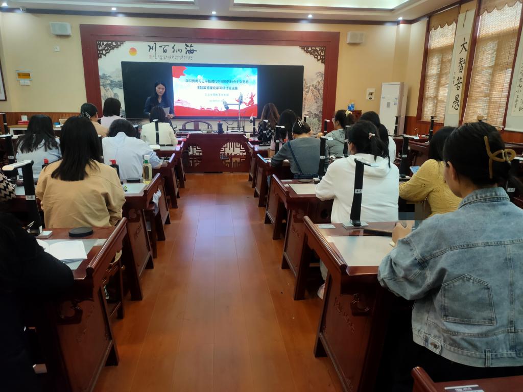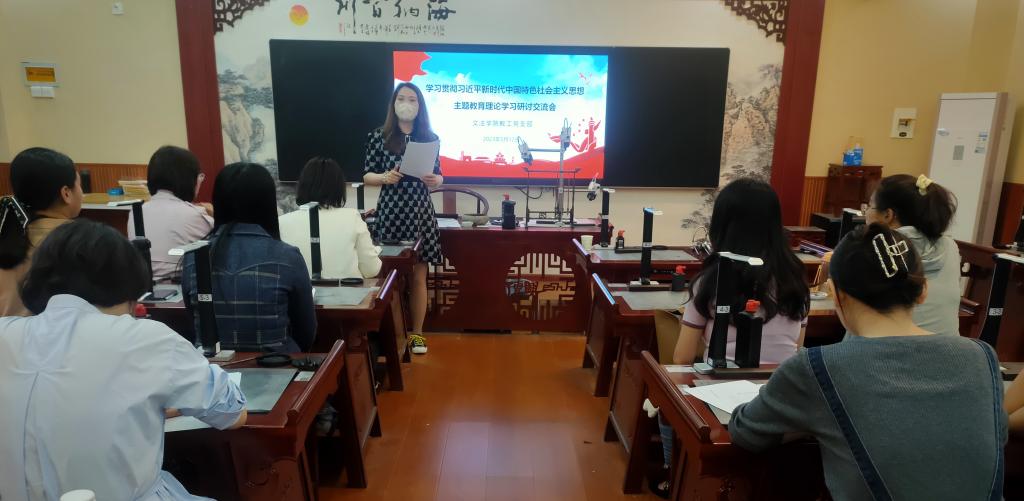 为深入学习贯彻党的二十大精神,全面系统学习习近平新时代中国特色社会主义思想,文法学院于5月12日在学院楼1-B319书法实验室召开学习贯彻习近平新时代中国特色社会主义思想主题教育理论学习研讨交流会。本次会议由教工党支部书记罗艳娟主持,我院全体教工党员参与。