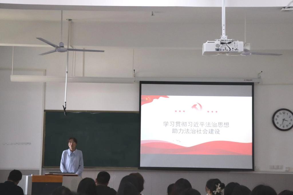 为强化党性修养和政治觉悟,文法学院于5月18日下午在学院楼1-B315教室召开学习贯彻习近平法治思想助力法治社会建设主题党课。此次党课由党委副书记刘松梅主持,副院长罗艳娟、团总支书记崔征及全体师生党员参加。