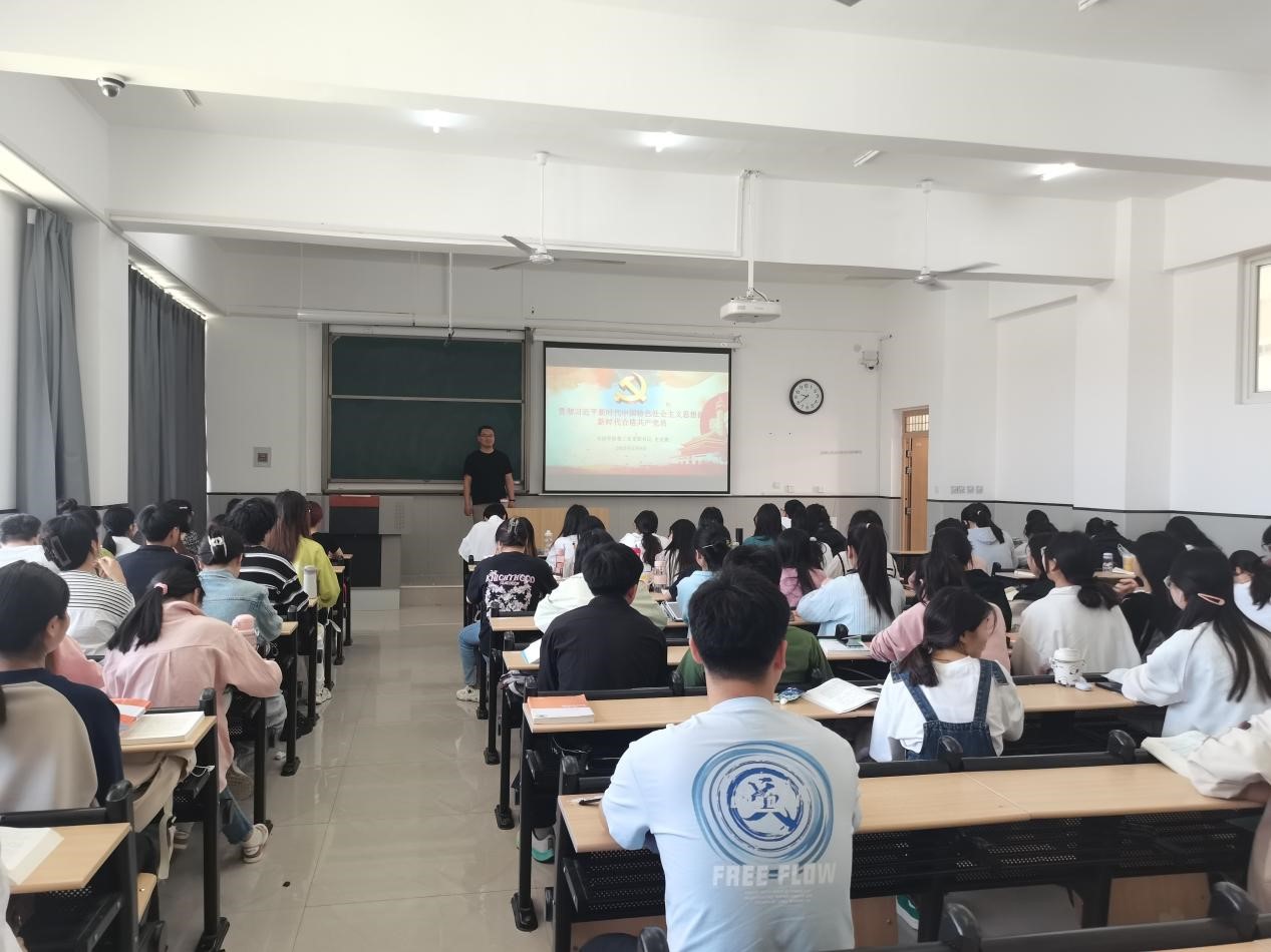 为进一步深入学习贯彻习近平新时代中国特色社会主义思想,持续用党的创新理论统一思想、统一意志、统一行动,推动支部党员、学生干部更加深刻领悟“两个确立”的决定性意义。5月19日中午,文法学院第三党支部书记在学院楼1B315教室为文法学院第三党支部全体党员上了一次党课。