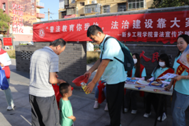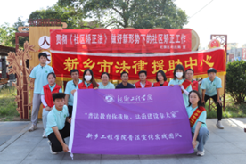 为宣传习近平法治思想,深入学习贯彻习近平新时代中国特色社会主义思想,推进主题教育走深走实,引导广大青年在社会实践中“受教育、长才干、作贡献”,充分发挥“三下乡”服务基层的作用,文法学院团总支书记崔征、黄瑞敏老师带领文法学院普法宣传实践团队联合新乡市司法局、新乡市红旗区司法局、河南牧野律师事务所于7月4日分别前往五普广场和向阳新村开展以“普法教育你我他,法治建设靠大家”主题暑期普法宣传实践活动。