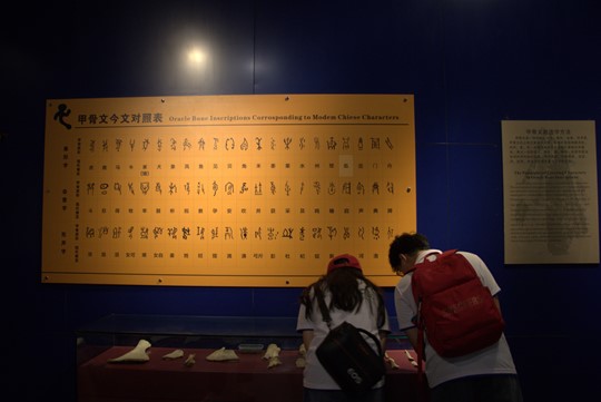 稍作休息后,实践团队来到了甲骨文发源之地,这是中华华夏文明最早的文字记录,由甲骨文演变发展而来的汉字,在传播华夏文化、促成中国大一统国家的形成与巩固方面发挥了重要作用。在博物馆内,一片片细腻的历史甲骨展示了中华华夏的峥嵘岁月和中华文明的勤劳聪慧,一幅幅生动的旧影,展现出中华文明的源远流长,也让团队成员更加深刻地领会到了中华文明建立的根源,生动形象地展示了古人的智慧与勤勉,同时也使得团队成员更加珍惜现代生活,现代生活来之不易,回望党的百年,同样如此,是艰苦创业,砥砺前行,筚路蓝缕的百年。