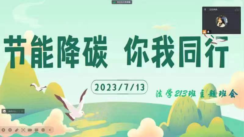 全国低碳日当天,我院以各班单位围绕宣传主题,开展“线上”PPT会议宣传活动,在会议中积极开展节能降碳先进经验和典型案例推广、节能降碳知识科普、绿色消费引导、绿色低碳出行等宣传活动。广泛宣传低碳发展理念,普及应对气候变化知识,提升同学们低碳意识,倡导简约适度、绿色低碳的生产生活方式。此次活动有利于引导同学们树立生态优先、节约集约、绿色低碳的生态理念,动员全社会广泛参与低碳行动,培育引领低碳新风尚。