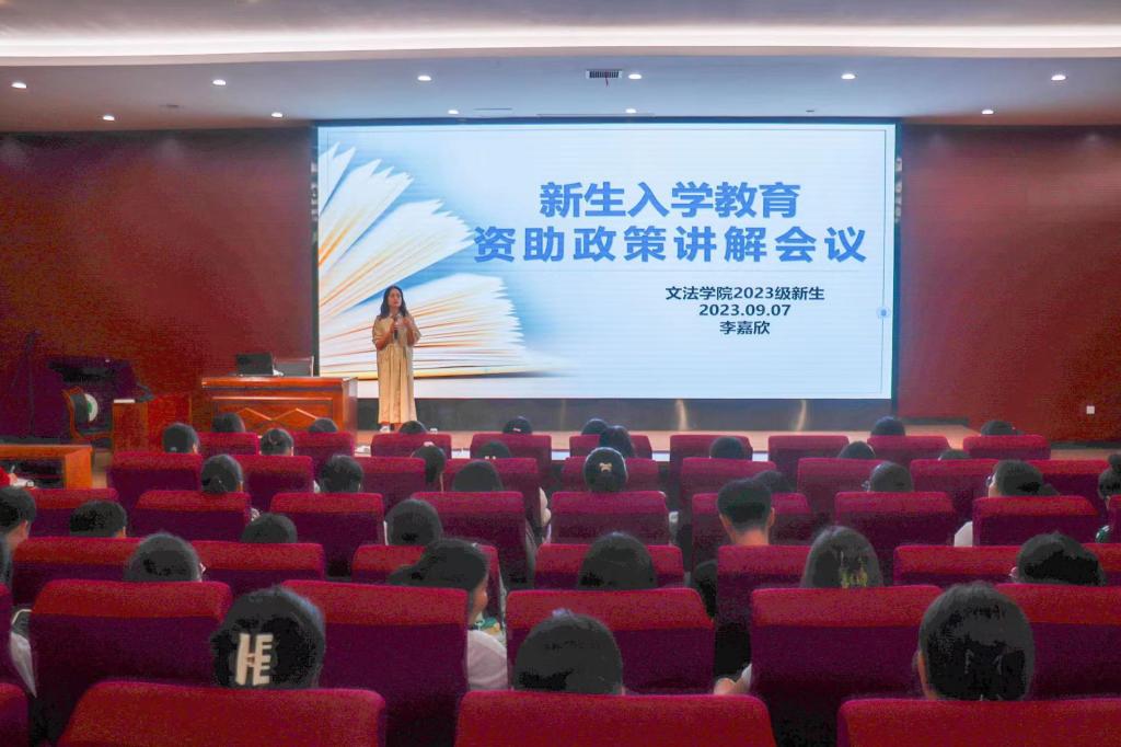 为认真贯彻落实国家资助政策,建好建强资助工作队伍,推动资助育人工作高质量发展,文法学院于9月7日中午12:30在学院楼报告厅召开新生入学教育资助政策讲解会议。此次会议由李嘉欣老师主持,文法学院全体2023级专升本新生参与。