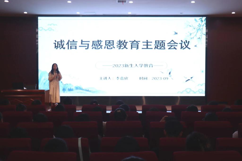 为全面贯彻党的教育方针,落实立德树人根本任务,进一步提升大学生道德修养,提升大学生诚信观念、感恩意识和社会责任感,文法学院于9月7日中午在学院楼报告厅开展诚信与感恩教育主题会议。此次会议由李嘉欣老师主持,文法学院全体2023级专升本新生参与。