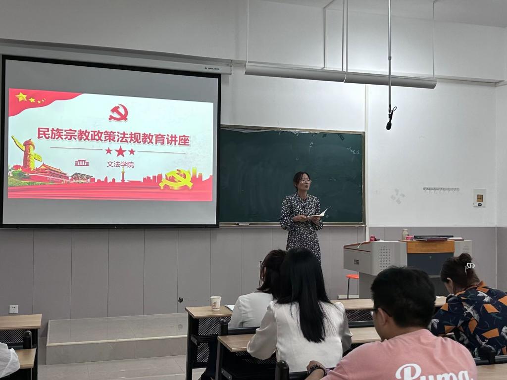 为进一步提高学院师生对党的民族政策与宗教政策的理解和认识,树立正确的民族宗教观,文法学院于9月21日召开民族宗教政策法规教育讲座。此次讲座由院党委副书记刘松梅主持,文法学院全体教师参与。