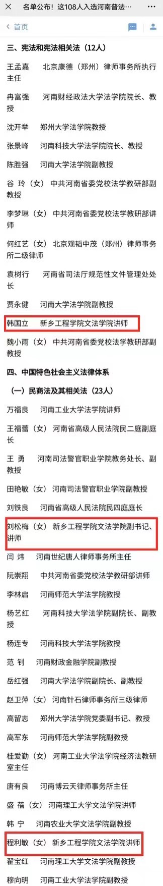 为深入学习贯彻习近平法治思想,推进“八五”普法规划顺利实施,充分调动社会资源,发挥法学专家学者的优势作用,进一步提高普法针对性实效性,推动全省普法工作守正创新、提质增效、全面发展。9月14日,中共河南省委全面依法治省委员会守法普法协调小组、中共河南省委宣传部、河南省司法厅、河南省法学会联合印发通知,公布了108名法学专家名单河南省百名法学专家普法讲师团名单,永利23411集团官网文法学院3名教师入选。