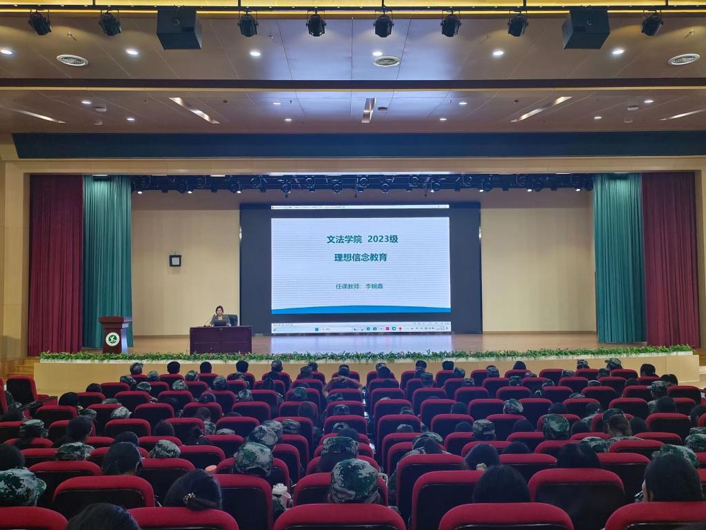 为深入学习习近平新时代中国特色社会主义思想,教育引导2023级新生树立崇高理想信念,厚植爱国情怀,顺利完成从中学到大学的角色适应和身份转变,树立正确的世界观、人生观和价值观。文法学院于9月18日在北校区报告厅开展理想信念教育专题讲座。此次讲座由李婉鑫老师主持,全体2023级新生参与。