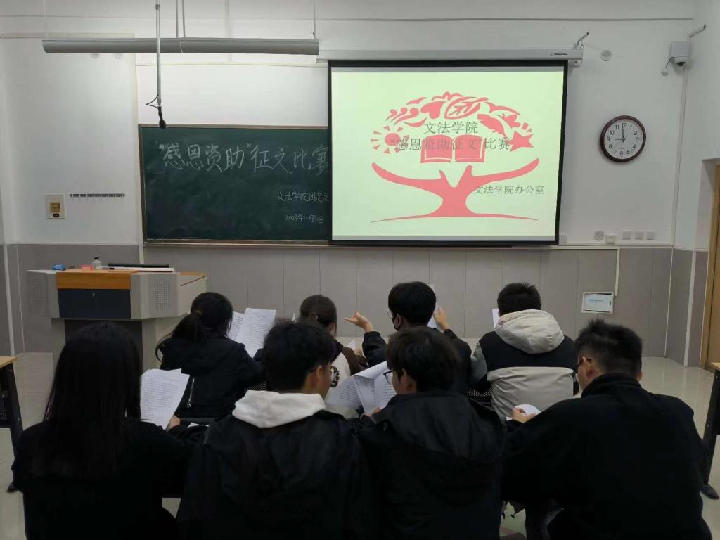 为使同学们更深一步了解国家资助政策,加强同学们思想道德建设,培养学生自信自立、热爱国家的优良品质,10月30日晚上20:00,我院于学院楼B317举办感恩资助征文评选活动。此次活动由我院团总支承办,我院学生积极报名参加。