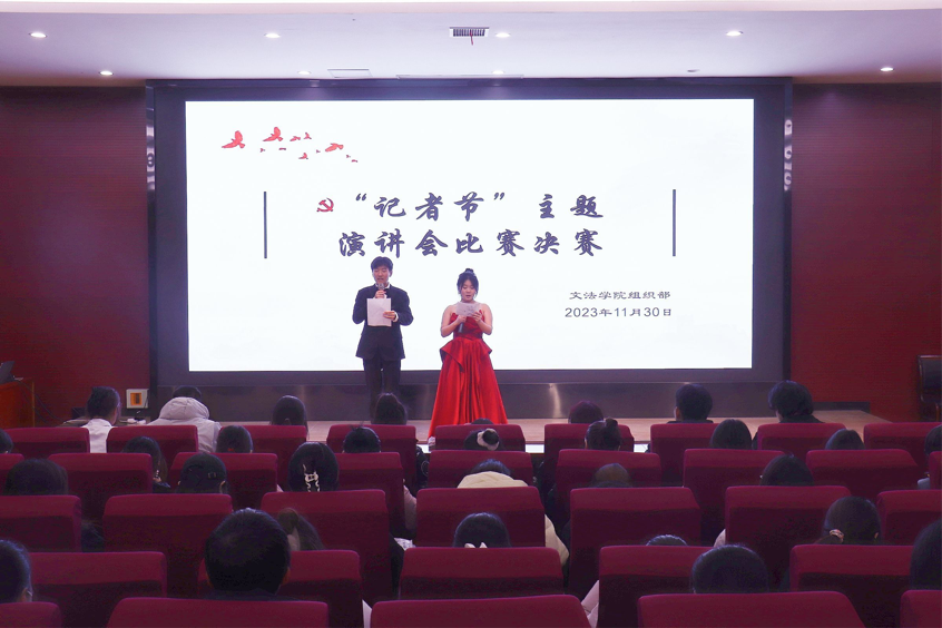 为使我院学生更加深刻认识记者节的含义,培养学生的新闻实践能力,激发学生的学习兴趣,丰富学生的校园生活,我院于2023年12月1日在南校区学院楼报告厅组织开展文法学院“记者节”主题演讲会决赛。经过初赛的激烈角逐,共有十二名同学进入决赛。