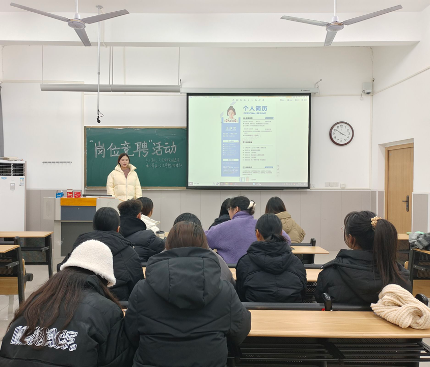 为进一步做好对在校大学生的就业指导工作,让同学们了解岗位招聘的基本要求和流程、提高就业能力,文法学院于12月14下午在学院楼315教室举办“岗位模拟竞聘”比赛活动,本次活动由文法学院学生会承办,我院21级、22级学生参加。