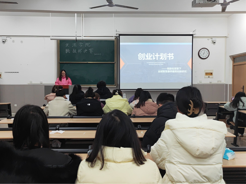 为深入学习贯彻习近平新时代中国特色社会主义思想,实施人才强国战略,引导和激励高校学生弘扬时代精神,勇于创新、投身实践,加强培养学生自主创业意识,文法学院于12月13日晚在学院楼203特开展“挑战杯PPT汇报决赛”活动,评委老师和部分学生代表参加。