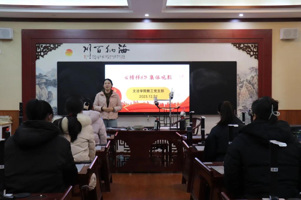 为深入学习贯彻习近平新时代中国特色社会主义思想,持续推动主题教育走深走实,教育引导基层党组织和广大党员干部学习榜样、争当先进、主动作为、担当有为。文法学院教工党支部于12月22日上午在学院楼B319集中观看学习专题节目《榜样8》。本次活动由文法学院教工党支部宣传委员徐梓滢主持,全体教工党员参加。